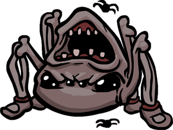Genera Arañas y ocasionalmente Sacos. Escurre un líquido blanco junto con los Sacos, lo que alentará a Isaac si camina sobre el líquido, pero no lo lastimará. Se mueve alrededor de la habitación saltando a grandes distancias hacia Isaac, y puede viajar a casi toda la longitud de la habitación de un salto. | ✔ |