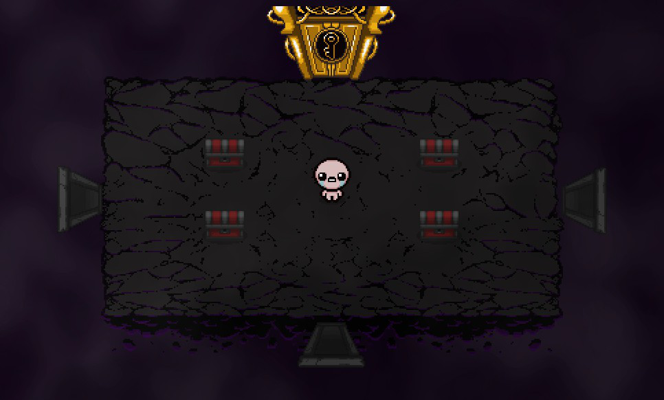 La primera habitación en la que aparecerás contendrá 4 cofres rojos. Los Cofres Rojos aparecerán con frecuencia tras haber limpiado completamente una habitación, teniendo el abalorio de Left Hand o no.