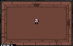 - Habitación del jefe: La habitación donde aparece un jefe, siendo ellos el desafío final del cada piso. Después de derrotarlo, un objeto aparece y una trampilla hacia el siguiente piso. Los objetos que aparecen en esta habitación solamente suelen dar una mejora menor al jugador, para asegurar que al menos alguna mejora más.