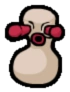 Effet visuel: Il change à chaque salle pour correspondre à l'effet de stats obtenu (tête qui grossit, petite taille, etc...) | |