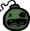 Bob's Curse (Malédiction de Bob) | + 5 bombes | Donne aux bombes un effet empoisonnant (Note: cela inclus les bombes de Dr Fetus, les missiles de Epic Fetus (Visuel uniquement), et les bombes ennemies | (B,10,3) | |