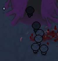 - Получая урон, в комнате появляются силуэты, отдалённо напоминающие вены | деревья. Вены в форме деревьев скорее всего является отсылкой на концовку, получаемую за победу над Молчанием. Находясь в Чистилище, вокруг Айзека куча мёртвых деревьев.