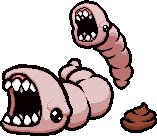 Larry Jr. is always paired with duplicates (though sometimes it might appear as one single long chain), and will quickly crawl around the room, leaving behind Poop piles. Larry Jr. has an erratic movement pattern as he appears to ignore Isaac until the player walks directly into his path, similar to the Charger Maggot - which is also similar to Larry in appearance. It also randomly leaves poops on its path which might block the player's way.