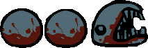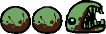 Larry Jr. sometimes shows up in other rooms later in the game starting from The Caves up to The Womb. He can appear in groups of three or more, and in its green or blue champion variants. The more Larry Jr.'s appear in the same room, the shorter each one of them is.