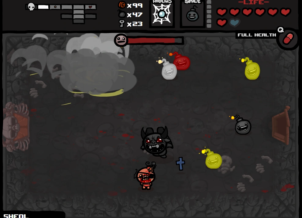 Sheol (pronounced "shee-ohl") is a level that was added in the Halloween Update. The walls appear to be the same material found in the Devil Room, most likely a reference to the name of the level, Sheol meaning "underworld" in Hebrew. Unlike other chapters, Sheol only has one floor, with Satan as the boss.