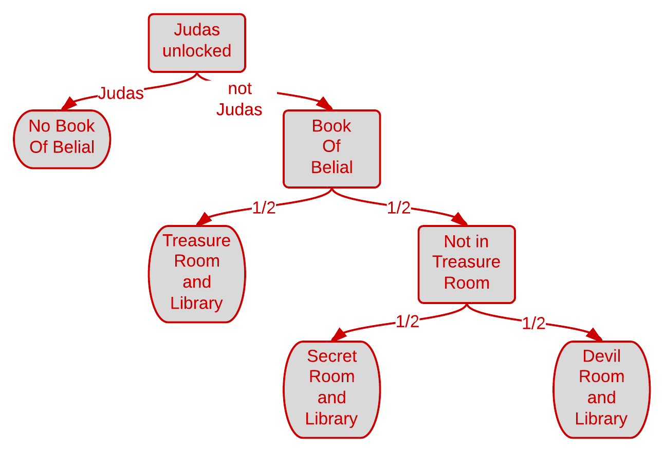 The process which the game goes through to decide if and in what room to make The Book Of Belial available.